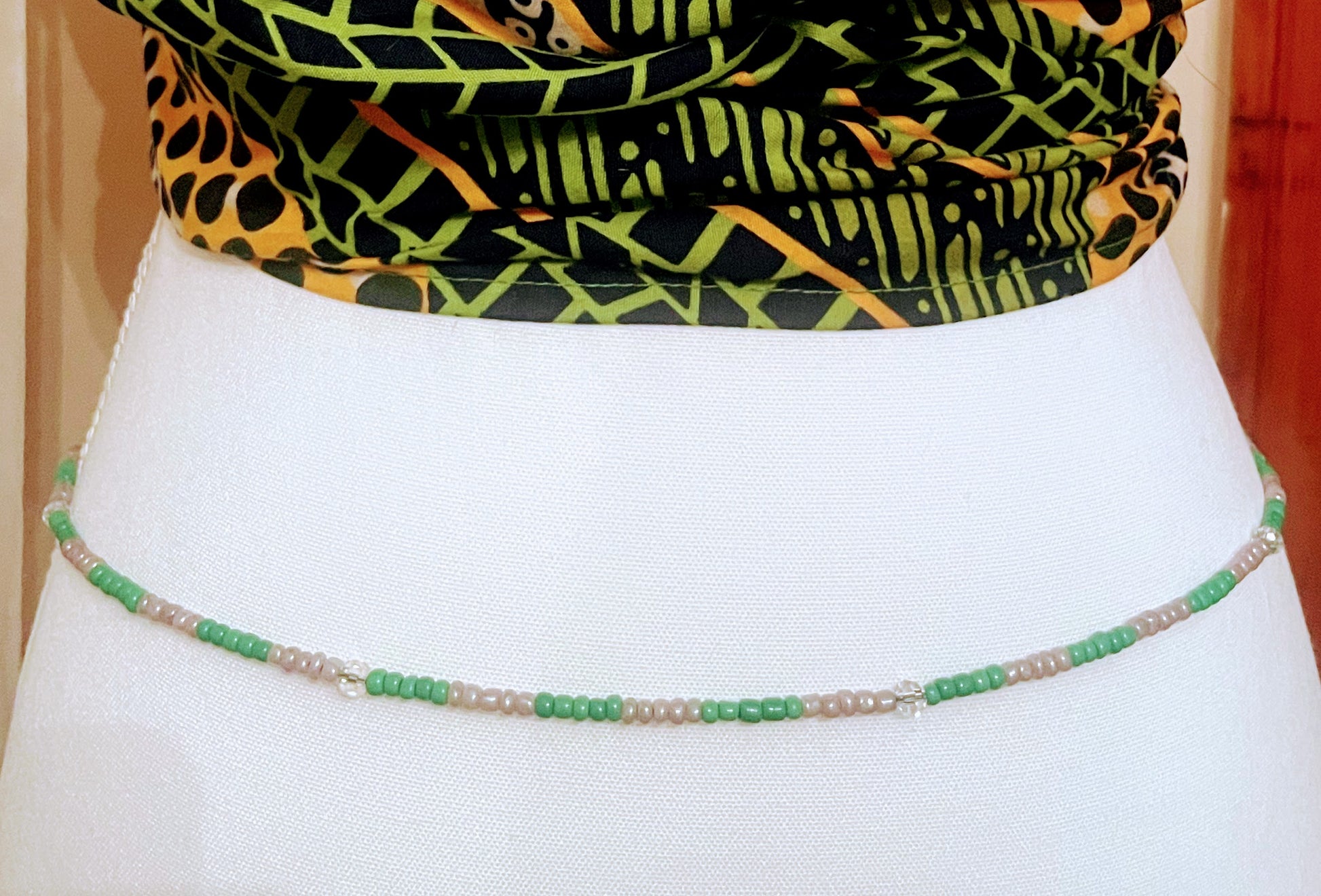 The Gray N Green waist bead showcases a tasteful blend of gray, green, and clear crystals, offering a sophisticated and delicate accent to your look. Designed to gracefully enhance your natural curves, this piece provides a subtle shimmer that complements both casual and elegant styles.