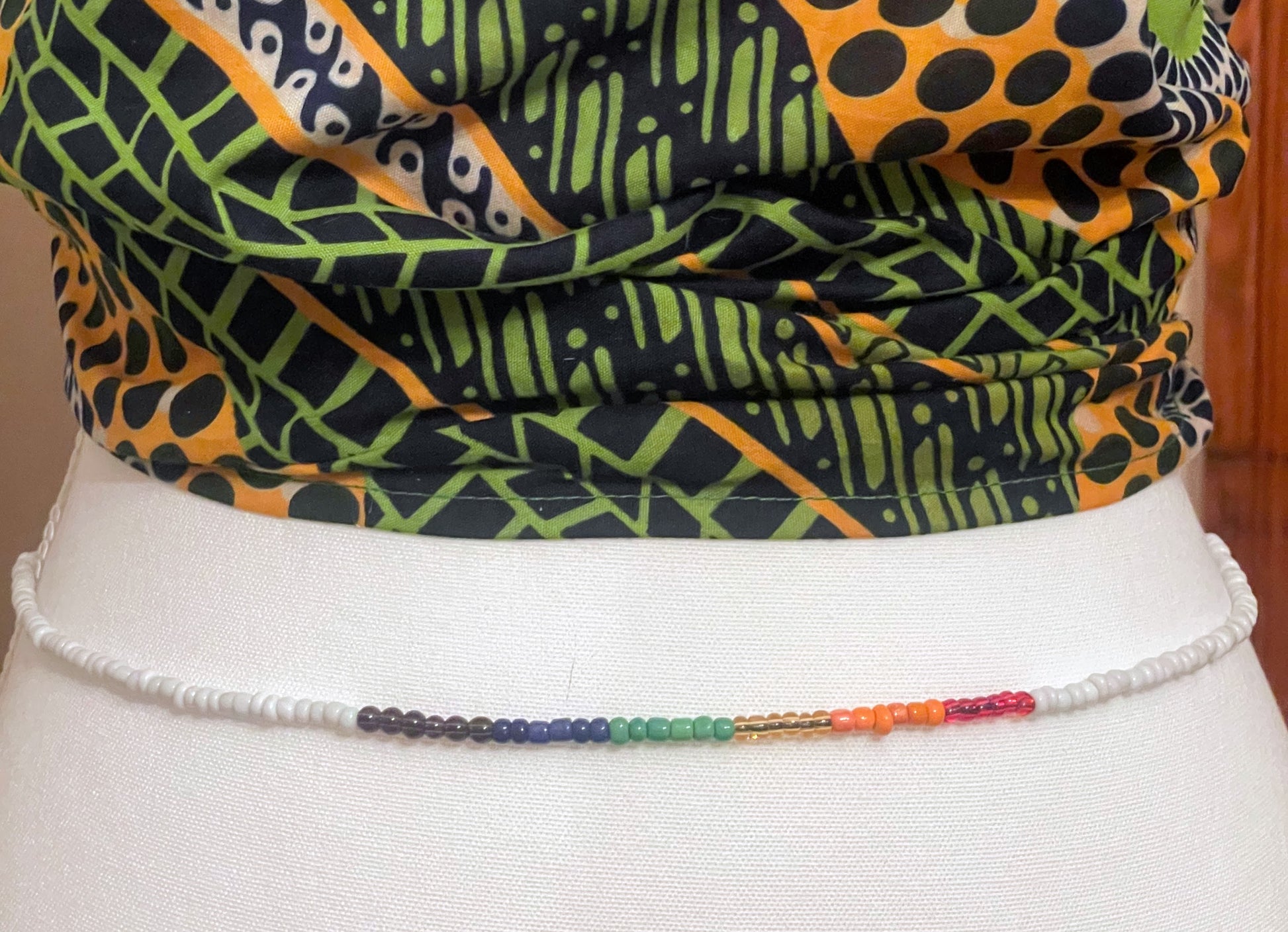 Introducing Rainbow, our beautiful waist beads that feature a mix of white and rainbow colors. These vibrant waist beads are a stunning accessory and can also serve as a waist-measuring tool. Handmade with love, they add a pop of color to any outfit.